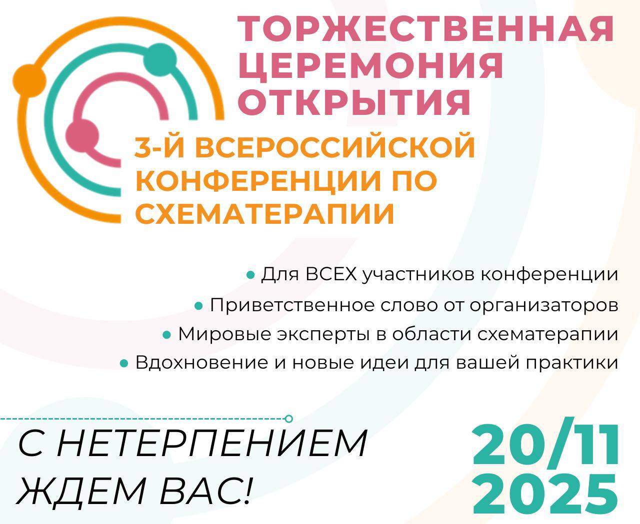 с радостью информируем вас о важнейших событиях первого дня 3-й Всероссийской Конференции по Схематерапии. Кульминацией этого дня станет торжественная церемония открытия, которая обещает быть важным и содержательным событием.